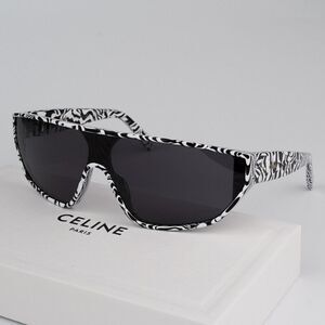NEW Celine CL40195I 04A Shiny Zebra Smoke Shield Mask Unisex Sunglasses