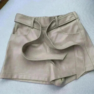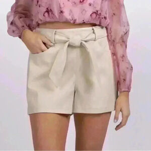 NEW Central Park West Leather Tie High Waisted Shorts In Sand Size S