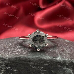 NEW Certified 3 ct. t.w. Grey Moissanite Solitaire 6 Prong Ring