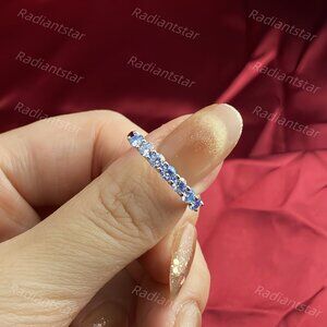 NEW Certified 3mm Royal Blue Moissanite 7 Stone Half Eternity Band Ring