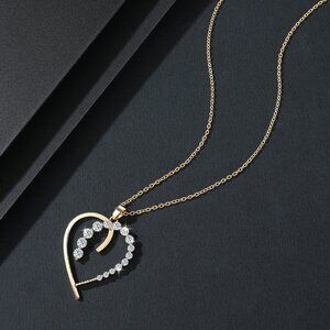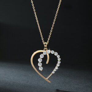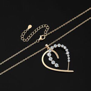 💎NEW Certified Asymmetrical Open Heart Moissanite Necklace Gold