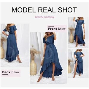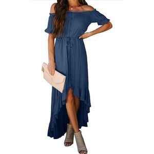 Women Dress Off The Shoulder High Low Hem Maxi Dresses