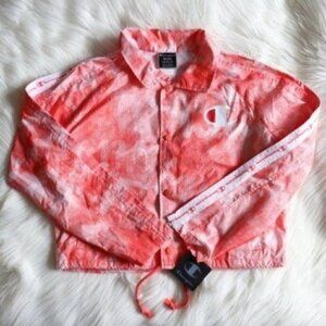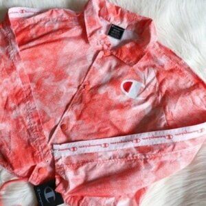 NEW Champion Logo Pink Sporty Wind Breaker Crop Tie Dye Boho Jacket Size Medium