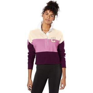 This stylish Champion cropped rugby tee features a classic collared neckline, relaxed fit, and bold logo design in soft beige and orchid. Perfect for everyday wear with a sporty edge.