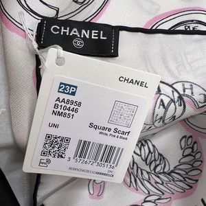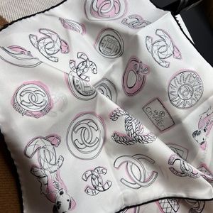 NEW Chanel 23P Puppy Dog CC Heart Charm 60 Square Silk Scarf Pink White Beige