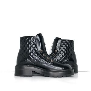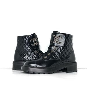 NEW Chanel Brave Shiny Calfskin Quilted CC Chain Cap Toe Short Boots 39