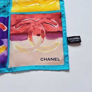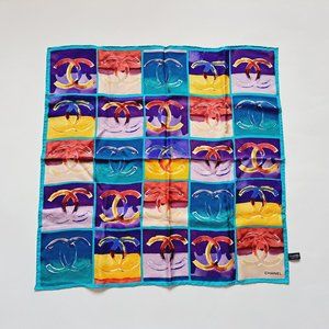 NEW Chanel CC Logo 100% Silk Multicolor Scarf 26" x 26"