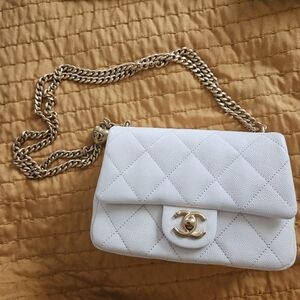 NEW Chanel White Caviar Shoulder Mini Flap Bag Gold Heart 10601 AUTHENTIC NWT