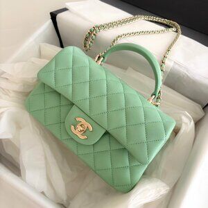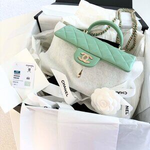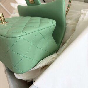 Authentic Chanel top handle mini rectangular in mint green from the 23P collection.