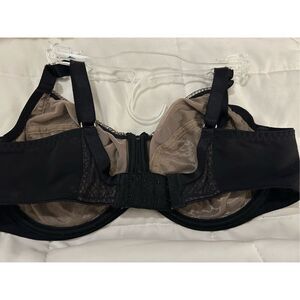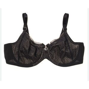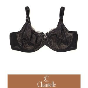 This stretch-knit bra with a fishnet motif is beautiful and comfortable. Cup lays flat and is smooth under clothing. Full coverage cups contain your bust and prevent you from spilling out. Cups are non-padded. Side support panels help center your bust and give minimizing effect. The top of the cup has extra stretch to adjust to your breast size and shape (great for uneven breasts). Straps are centered, preventing them from falling off your shoulders. Wide power mesh band smooths the back and gives great support. Straps are fully adjustable. Center front is adorned by a Chantelle charm and bow giving you a feminine feel.