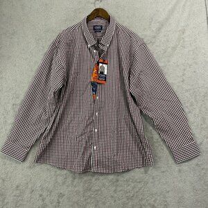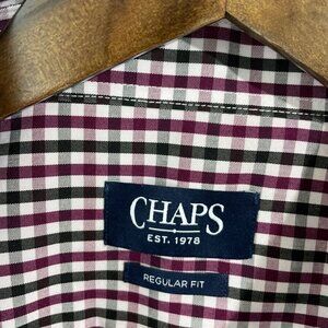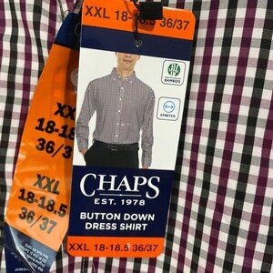 NEW Chaps Mens XXL Regular Fit Button Down Checkered Dress Shirt Bamboo Stretch