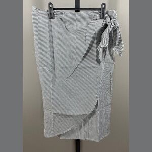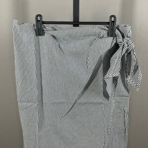 NEW Chaps Skirt Womens 6 black stripe faux wrap straight midi preppy casual