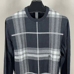 NEW Chaps Sweater Mens Large black plaid knit pull over crew neck classic