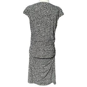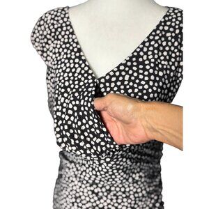 NEW Chaps Womens Sheath Midi Ruched Dress L Black White Polka Dot Stretch Should