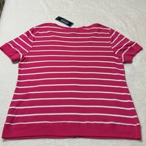 NEW Chaps Women’s XL Pink White Striped Button Up Cardigan Short Sleeve Cotton
