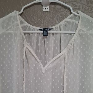NEW Chaps wome's Ivory Sheer Polka Dot Blouse Size M