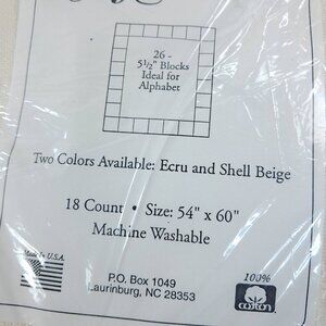 18 count. 26 5 1/2" blocks ideal for alphabet. Size 54x60" Made in USA. 100% cotton. SLIGHTLY IRREGULAR.