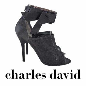 NEW Charles David Black Sateen Bow and Mesh Heels Sz 6.5