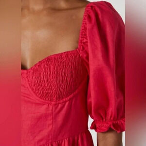 NEW Charlie Holiday Mini Dress Size Medium pink sweetheart puffed sleeves