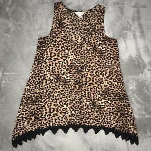 NEW Charming Charlie Leopard Animal Print Lace Trim Swing Fit Tank Top Small S