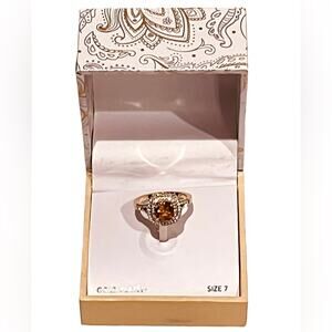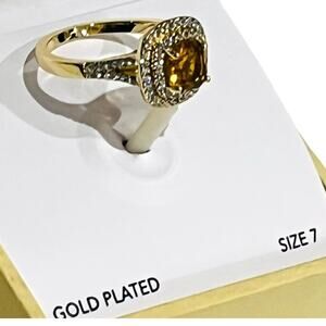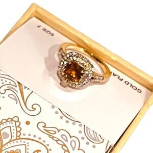 NEW Charter Club Gold Tone RING Size 7 Double Halo Cognac Crystal Macy’s Boxed