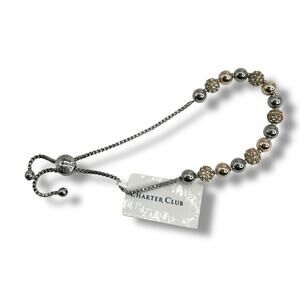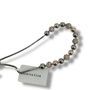 NEW Charter Club Pave & Imitation Pearl Bolo Slider Bracelet Silve Rose Gold