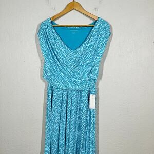 NEW! Charter Club Printed Mock Wrap Dress V Neck Blue White Sleeveless Casual XL
