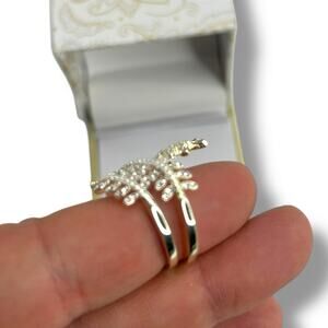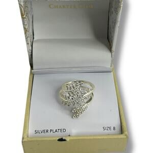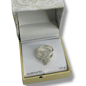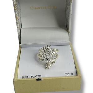 NEW Charter Club Silver Plated Leaf Ring Size 8 Crystal Leaf Wrap Ring