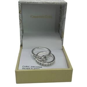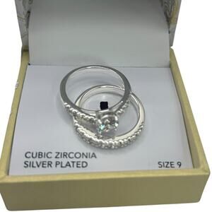NEW Charter Club Silver Ring Set Size 9 Cubic Zirconia Silver Plated Engagement