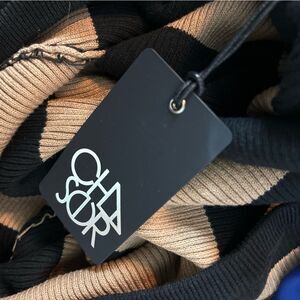 NEW Chaser Black & Tan Wide Stripe V Neck Cotton Sweater Size Small Relaxed Fit