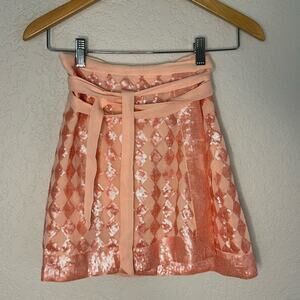 NEW Chaser Gramercy Sequin Checked Pink Mini Wrap Skirt Feminine Glam Summer