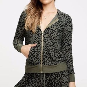 NEW Chaser Leopard Zip Up Hoodie Safari Green XS
