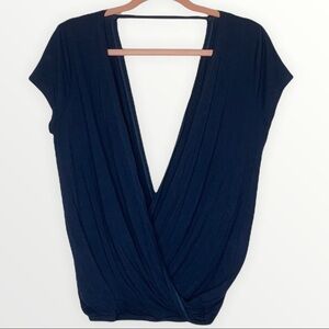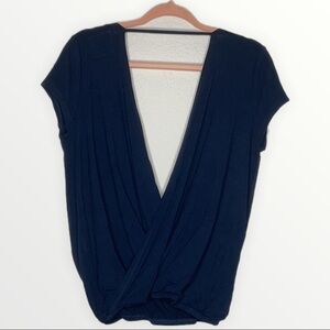 NEW Chaser Navy Soft Knit Faux Wrap Elastic Waist Double Surplice Top Sz. M