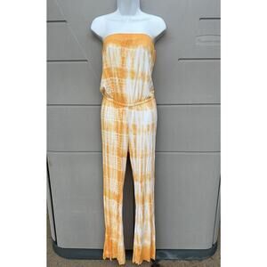 NEW Chaser Yellow Tie Dye Draped Back Bell Bottom Strapless Jumpsuit Sz Med