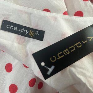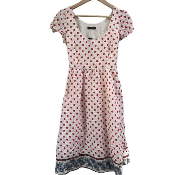 NEW Chaudry Anthropologie Dress Lined Polka Dot Tie Back Cap Sleeve Small