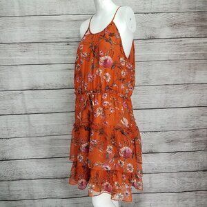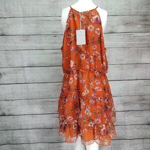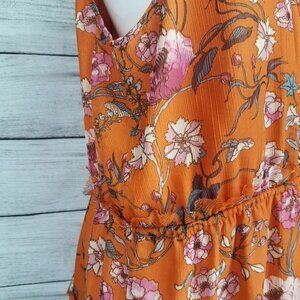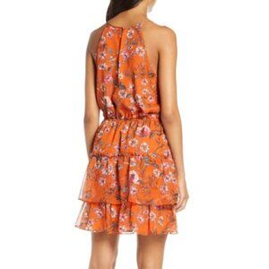 Chelsea28 XL Tiered Chiffon Fit & Flare Dress in Orange Floral NWT $139