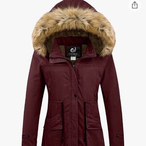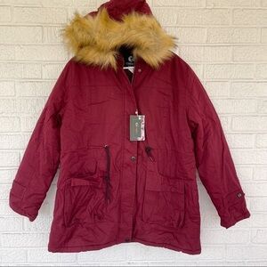 NEW Cherfly Hooded Maroon Red Utility Parka Military Faux Fur Coat Size XL NWT