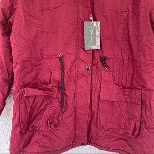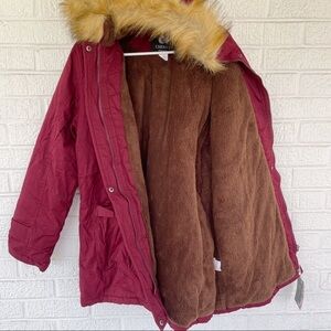 Cherfly Hooded Maroon Red Utility Parka Military Faux Fur Coat Size XL NWT
