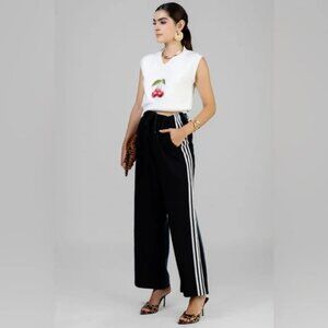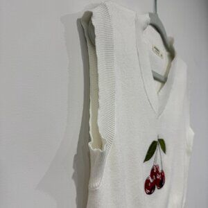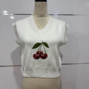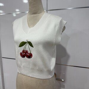 NEW Cherry Embroidered Knit Vest in White, Size M
