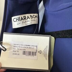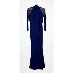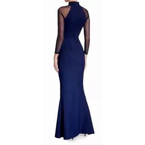 NEW Chiara Boni Maylys Mock-Neck Mesh Sleeve Illusion Gown Blue Size IT46 10