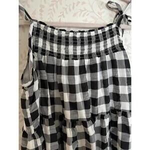 Elevate your summer wardrobe with this stylish black and white gingham dress. Featuring a smocked bodice and ruffled hemline, this dress offers a comfortable fit while maintaining a trendy look. The adjustable tie straps ensure the perfect fit for any occasion, making it perfect for picnics, beach days, or casual outings. Crafted from lightweight fabric, this dress is breathable and soft, providing all-day comfort.