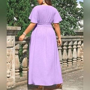 NEW Chic Ruched Waist Flutter Sleeve Maxi Dress Lavender Purple