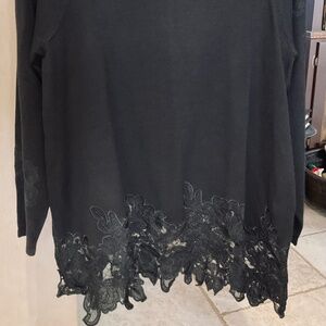NEW Chico's Black Knit Long Sleeve Sweater Top with Lace Trim Size S (Sz 1)