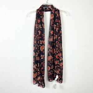 NEW Chico’s Black & Orange Sheer Jacobean Floral Oblong Scarf One Size