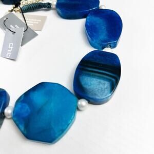NEW Chico's Blue Agate Semi-Precious Stone Collar Statement Necklace