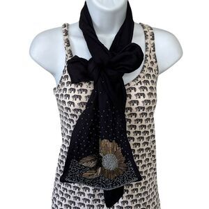 NEW Chico’s Embellished Scarf 100% Viscose Black Sequins Beading 70” x 8”