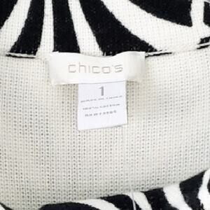 NEW Chico's Empress Cardigan Sweater Sz 1 (MED) Black Graphic Fans Buttons