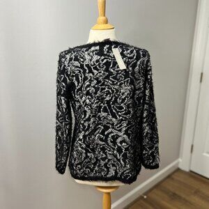 NEW Chicos Eyelash-Trim Jacquard Pullover Sweater Sz 1 (8)
