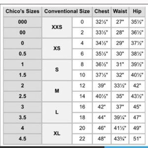 Size: Chico's size 1- according to their size chart this is a traditional women's size 8