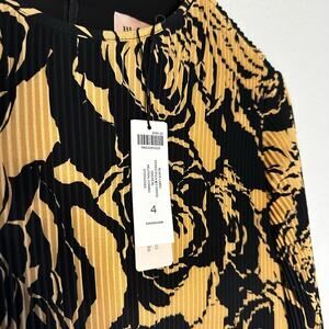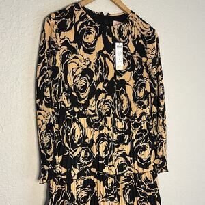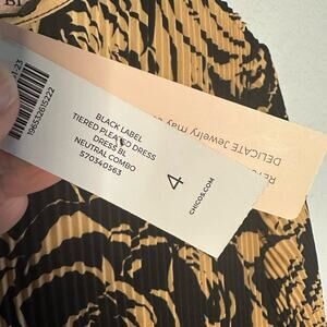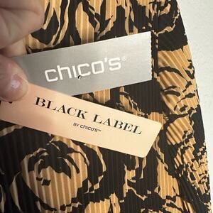 NEW Chico’s Floral Pleated Tiered Dress Black Label Tan Cocktail Party High Neck